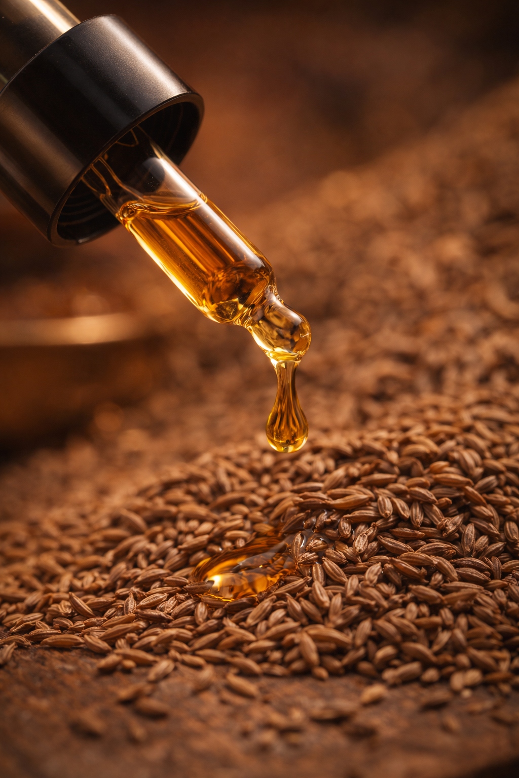 Cumin Seed Certified Organic Oil is a premium essential oil, steam distilled from the seeds of Cuminum Cyminum. Organic Cumin seed oil is extracted from Cumin cyminum of the Apiaceous family and is also known as cumin and Roman caraway. The oil is used for a variety of commercial purpose. Characterised by its medium strength of aroma, it has a characteristic warm, spicy and musk profile, this oil finds application across aromatherapy, skincare, perfumery, and wellness formulations globally. Aromalis India sources this essential oil from trusted farms in India, ensuring every batch meets the rigorous quality standards demanded by international formulators and brands.